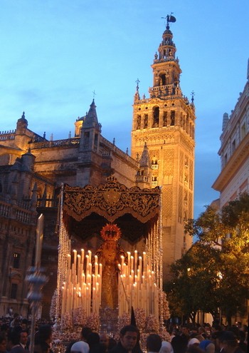 El palio sobre las 8 de la tarde enfilaba la calle Miguel de Mañara iniciando su largo camino de vuelta hasta el Cerro. |